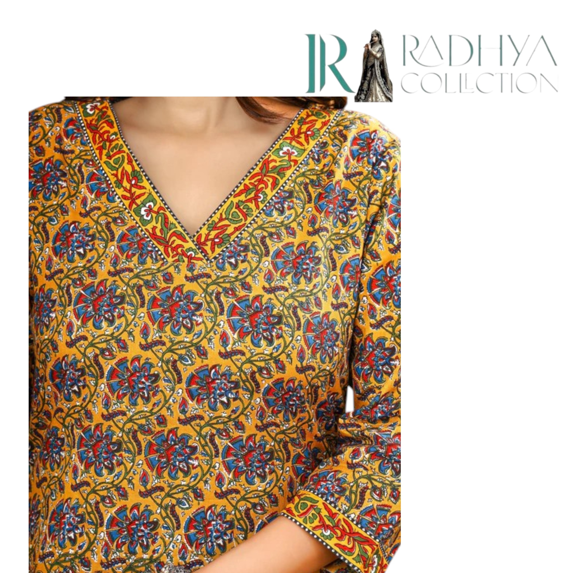 • Color: Mustard base with multicolor Kalamkari floral print