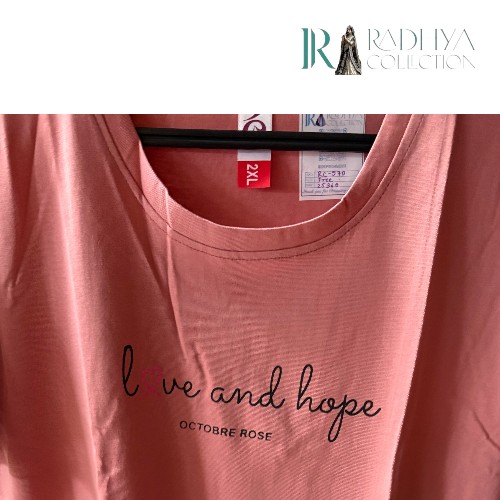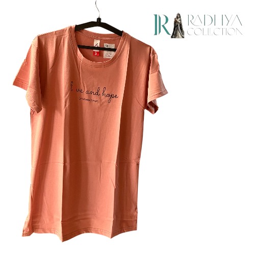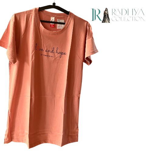 Stay effortlessly stylish with this peach-colored slogan tee from Radhya Collection. Featuring the uplifting words “Love and Hope” in elegant script, this t-shirt combines comfort with a touch of inspiration.