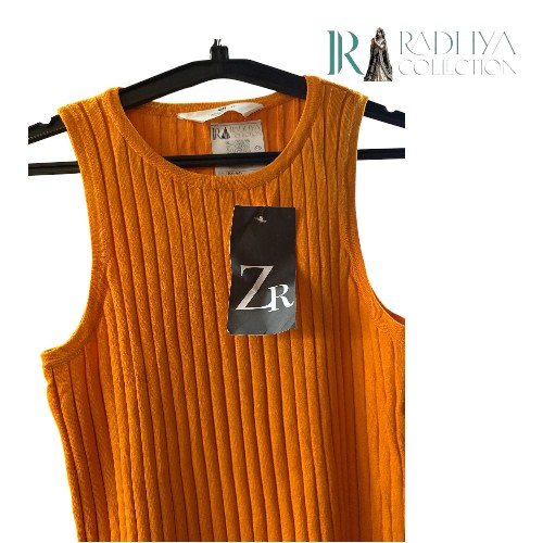 Brighten up your everyday style with this ribbed sleeveless tank top from Radhya Collection. Made with soft, stretchable fabric, it ensures comfort while giving you a chic, fitted look. The vibrant orange hue makes it a perfect statement piece to pair with jeans, shorts, or skirts.