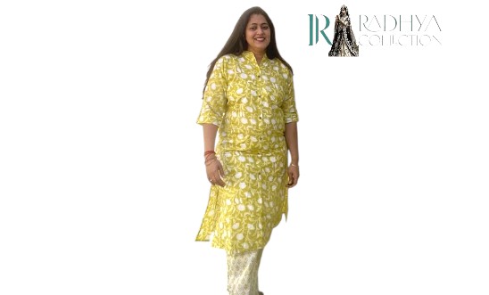 Brighten up your everyday look with this vibrant yellow floral cotton kurta set from Radhya Collection. Designed with a smart shirt-style collar and front button-down detailing, this outfit perfectly balances traditional prints with a modern silhouette. Paired with matching bottoms, this set is comfortable yet effortlessly stylish, ideal for casual outings, work, or festive get-togethers.